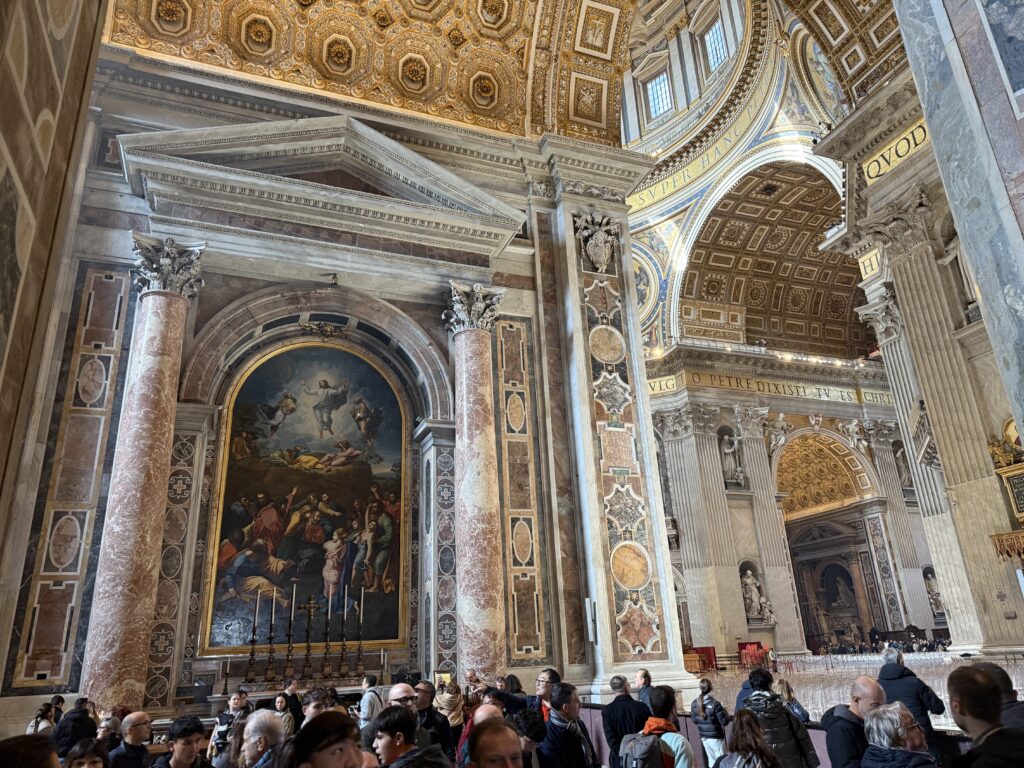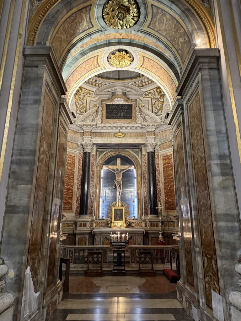 Singles of the Eucharist pilgrimage to Rome for the 2025 Jubilee Year of Hope. Side altar of a Catholic church. Rome, Italy